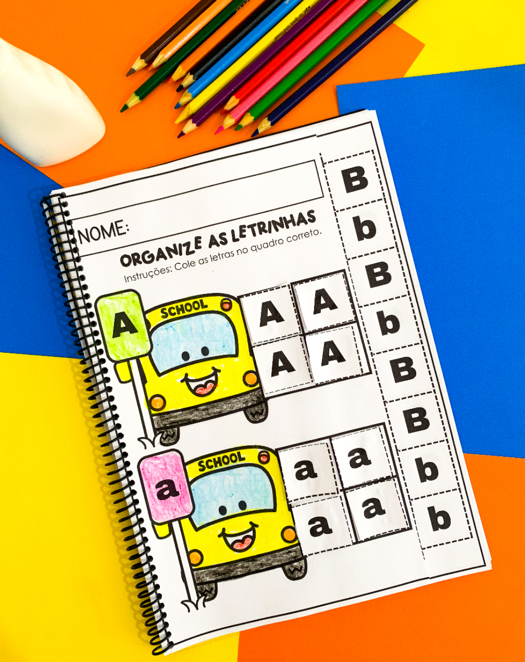 O desafio é simples e super divertido: cada letrinha tem seu lugar reservado no ônibus. A criança precisa identificar se a letra é Imprensa Maiúscula (Caixa Alta) ou Imprensa Minúscula (Caixa Baixa) e “estacioná-la” no compartimento correto.