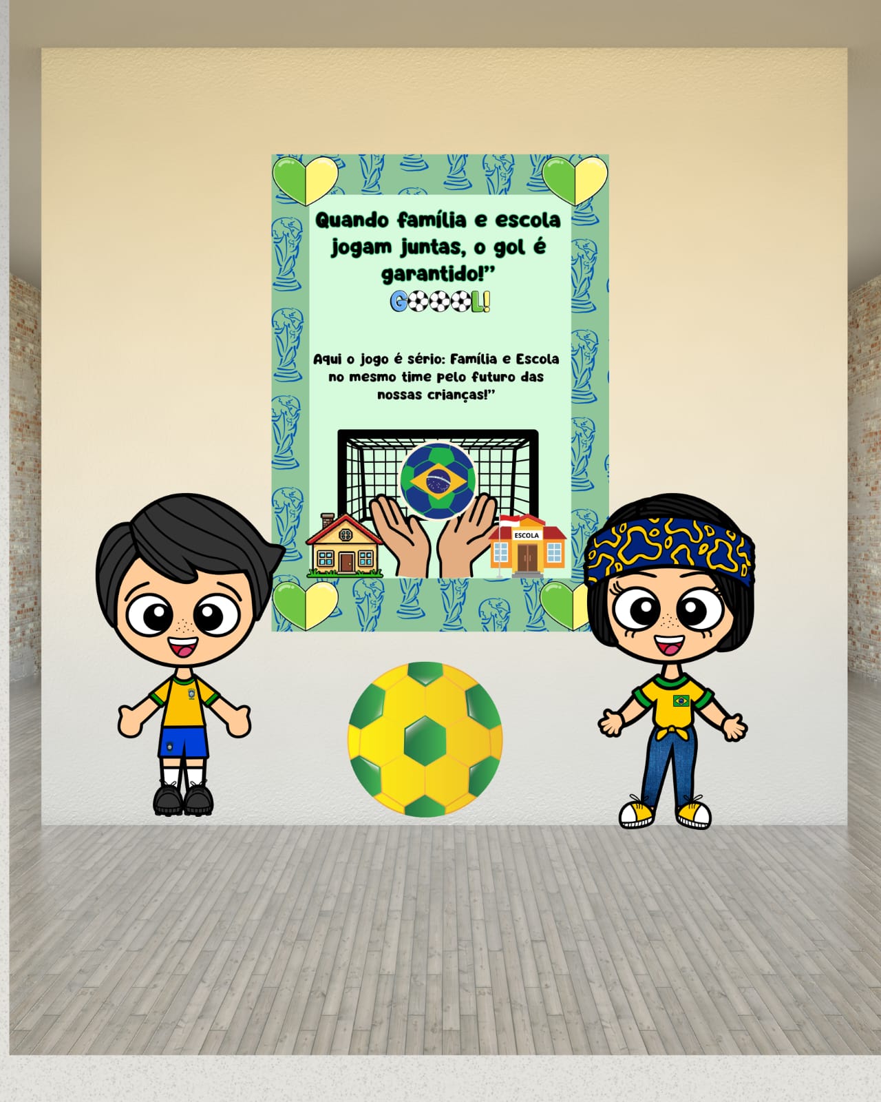 O painel “Família e Escola no Mesmo Time” foi pensado para fortalecer a parceria entre escola e responsáveis, com uma decoração linda, temática e fácil de montar.