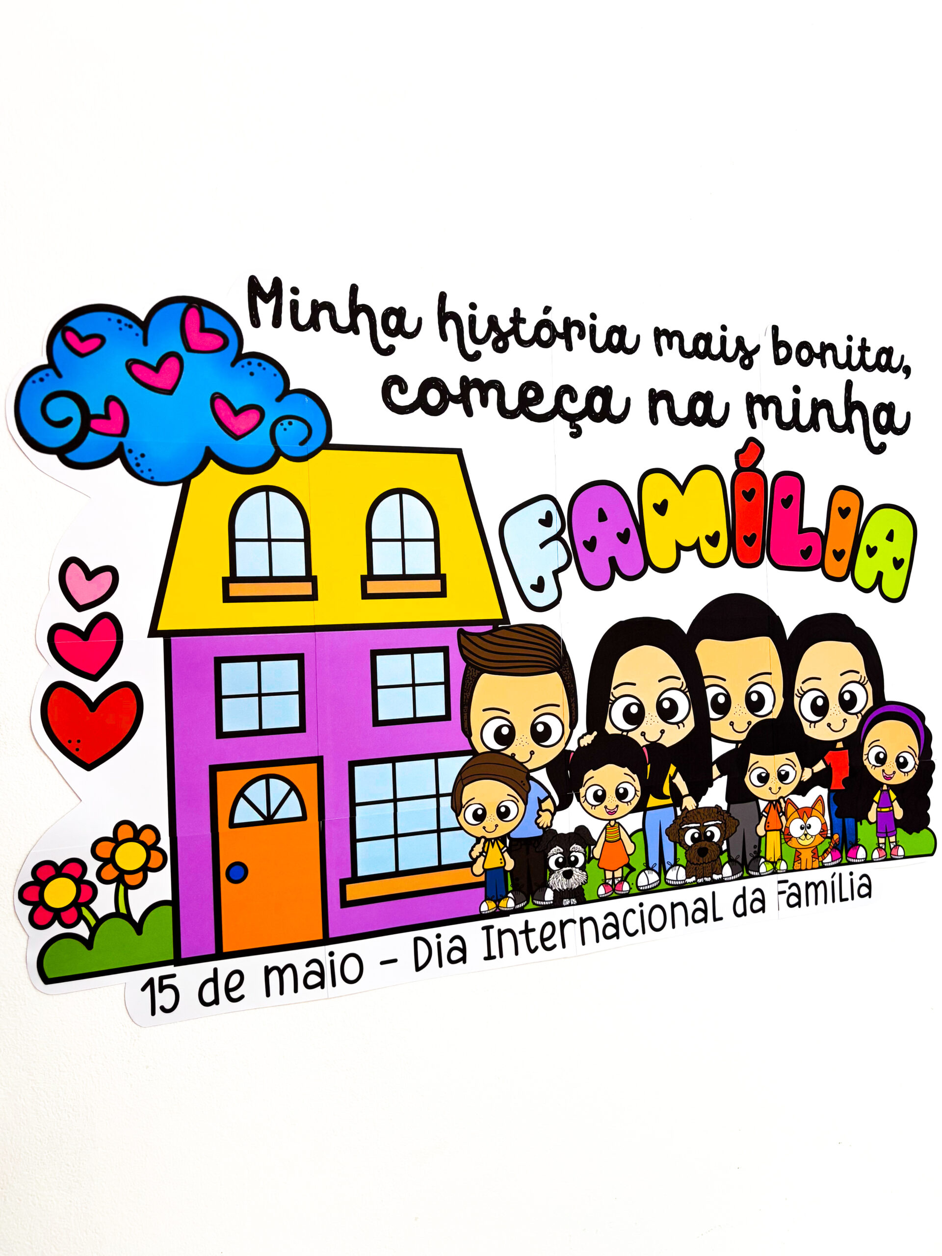 Esse painel transforma o Dia da Família em um momento realmente especial… daqueles que emocionam, envolvem e ficam na memória, perfeito para fotos afetivas com as famílias, valoriza os laços e a identidade de cada criança.