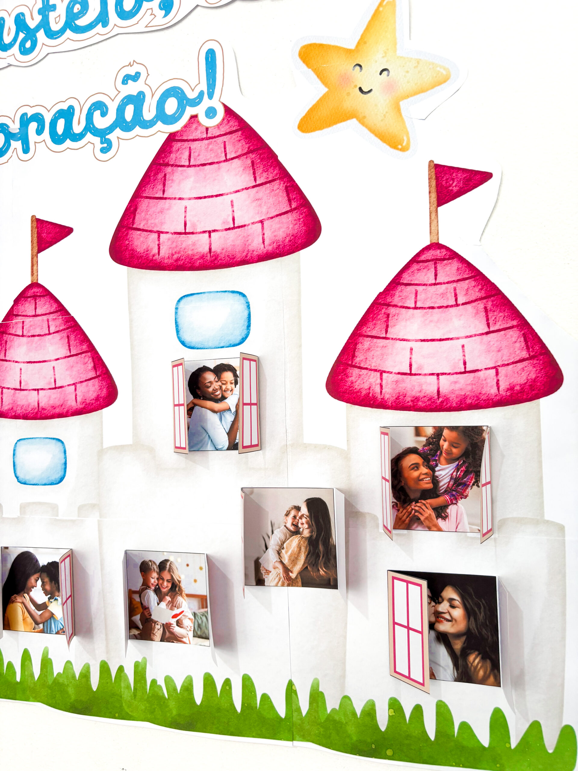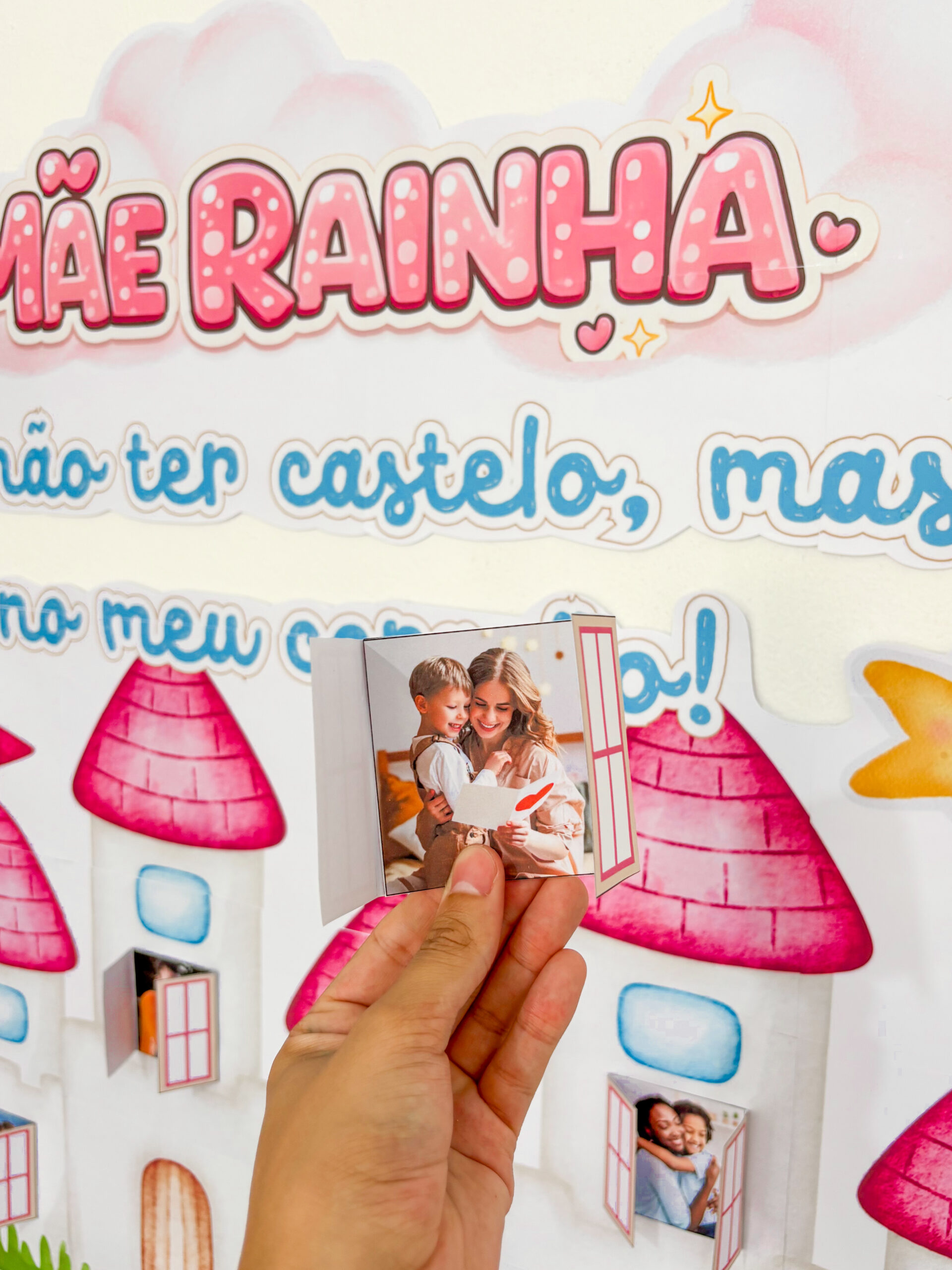 O Painel Mamãe Rainha é uma homenagem clássica e majestosa, desenvolvida para destacar o papel central que a figura materna ocupa na vida e no coração de cada criança. Com a proposta sensível de que “toda mãe é rainha, mesmo sem castelo”, este recurso visual transforma o ambiente escolar em um espaço de celebração e pertencimento. O grande diferencial deste material é a sua interatividade e personalização: através de janelinhas decoradas, o professor pode expor as fotos das mães da turma, criando uma galeria de afetos que fortalece a identidade do aluno e emociona as famílias ao verem suas histórias valorizadas no ambiente educativo.